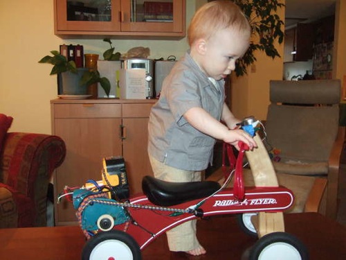 Check out this modification to a child’s Radio Flyer Trike. An old power tool turns this human powered trike into a motorized version. I love it. (Yes, I know it’s a little dangerous).